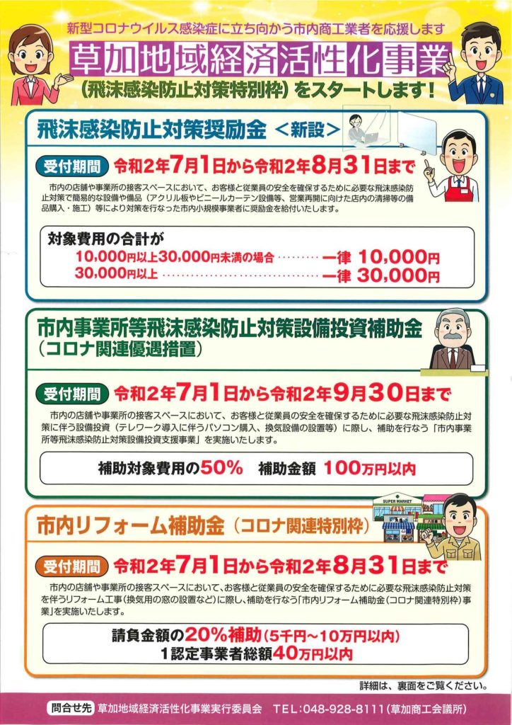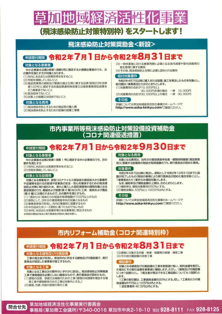 草加地域経済活性化事業(飛沫感染防止対策補助金)が新設されました。