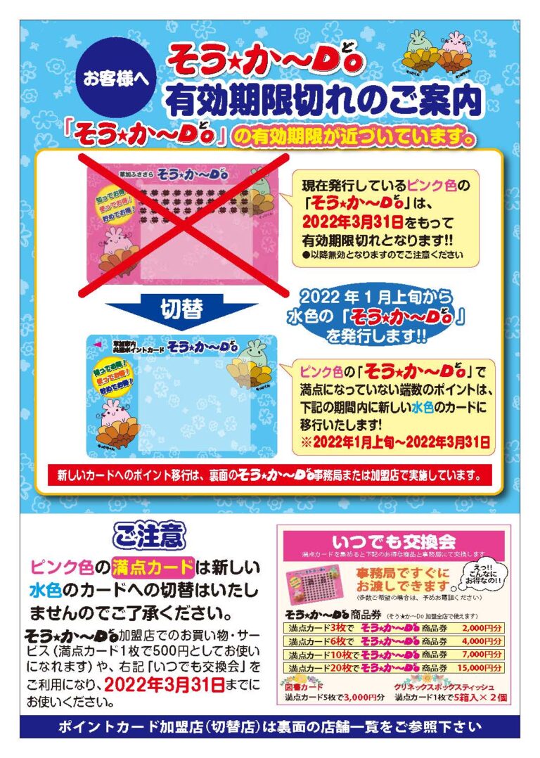 2023 そう★か~Do 秋のポイントUP大抽選会を開催します!皆さん奮ってご参加ください! 日時: […] -