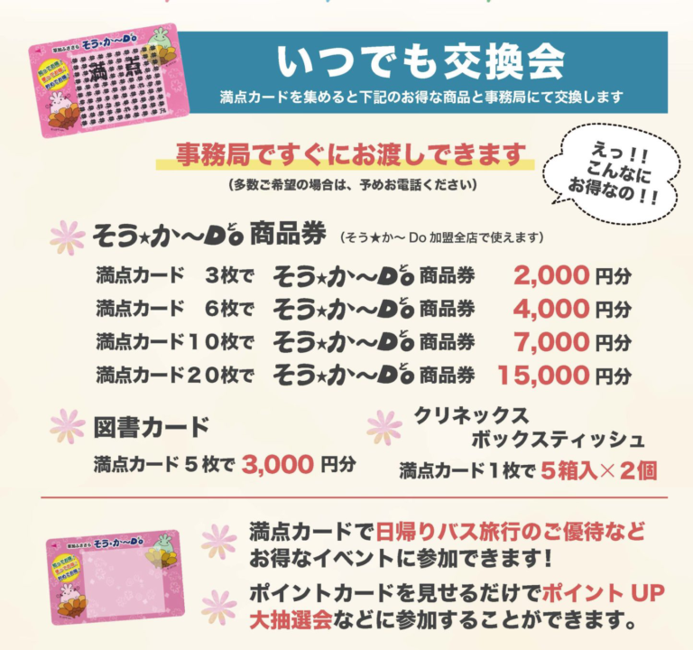 満点カードを集めてお得な商品と交換! 事務局ですぐにお渡し(多数ご希望の場合は、予めお電話ください) […]