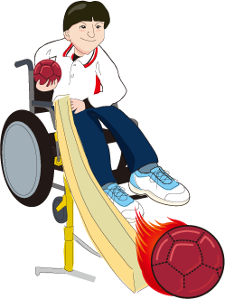 手で投げることができない選手は足でキックしたり、投球補助具(勾配具)「ランプ」を使ってボールを転がします。
