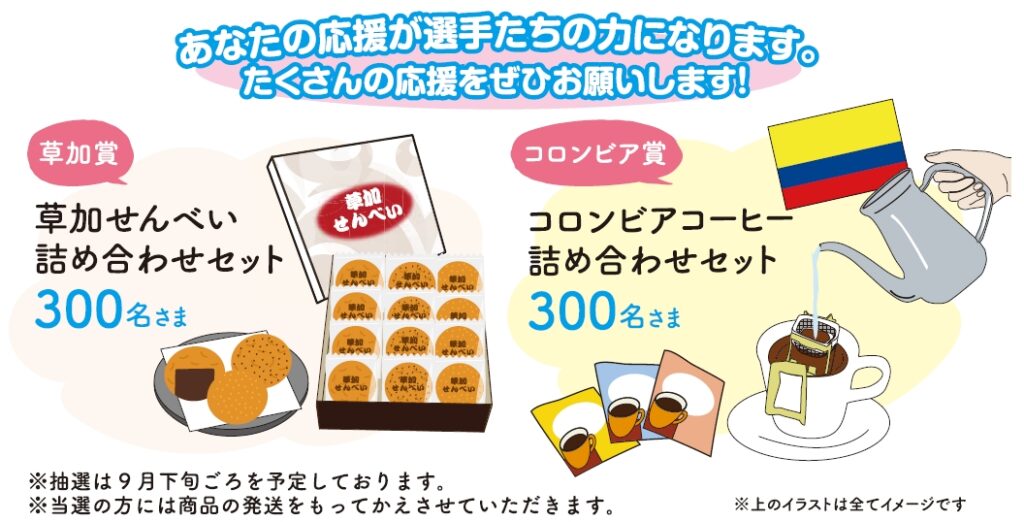 スタンプラリー実施店でお買い物やご飲食などをしていただき、さらに草加市ゆかりのパラリンピック選手へ応援メッセージを寄せてくださった方に抽選でプレゼントが当たるキャンペーンを実施します。
