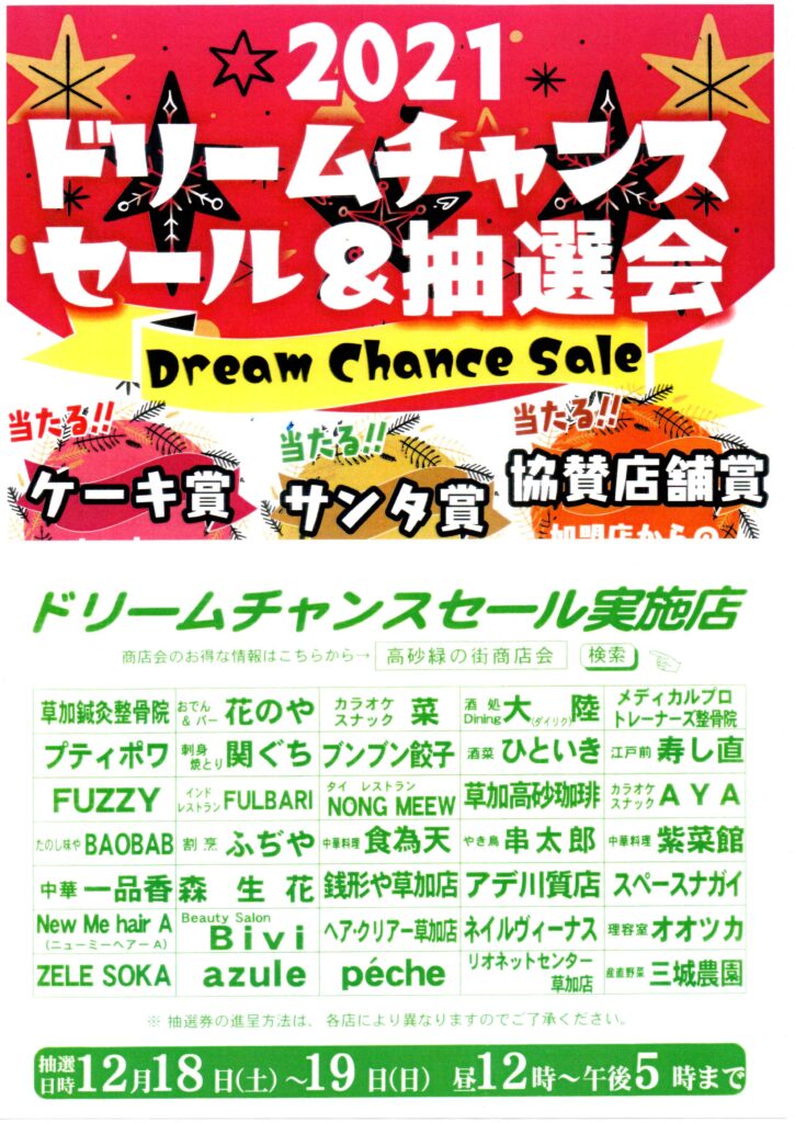 恒例ドリームチャンスセール&抽選会を行います。
