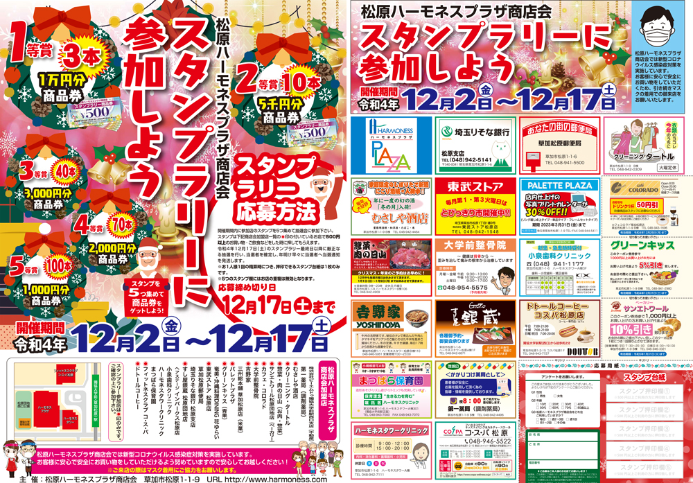 松原ハーモネスプラザ商店会では、令和4年12月2日(金)から12月17日(土)までスタンプラリーを開催しています!