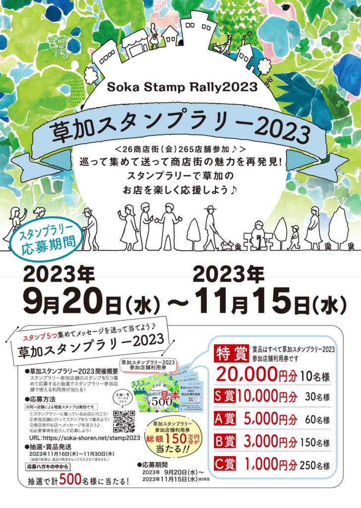 特賞「草加スタンプラリー2023 参加店舗利用券」20,000円分(10名様)