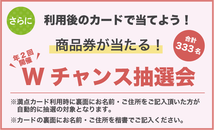 利用後(交換後)のカードで商品券が当たるWチャンス抽選会を年2回開催しています。