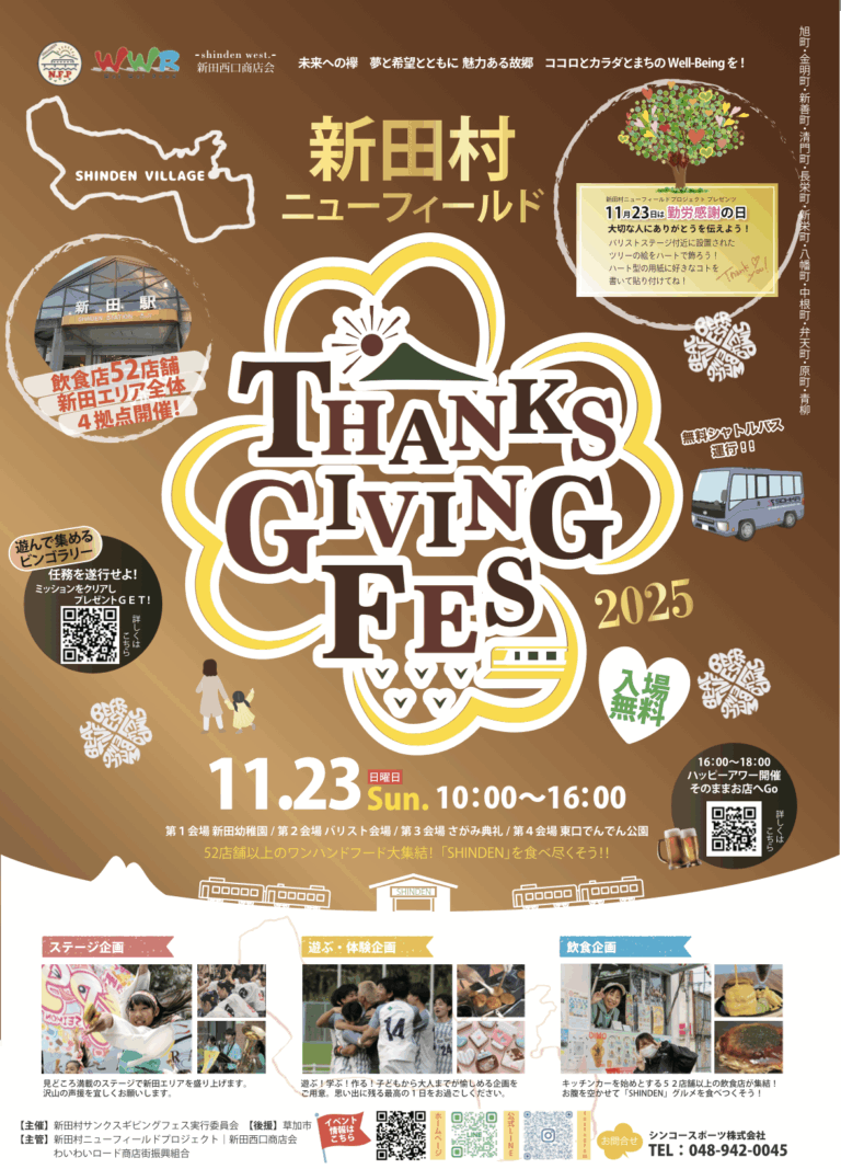 新田村サンクスギビングフェス2025を開催します。 日時:11月23日(日・祝) 10:00〜16: […]